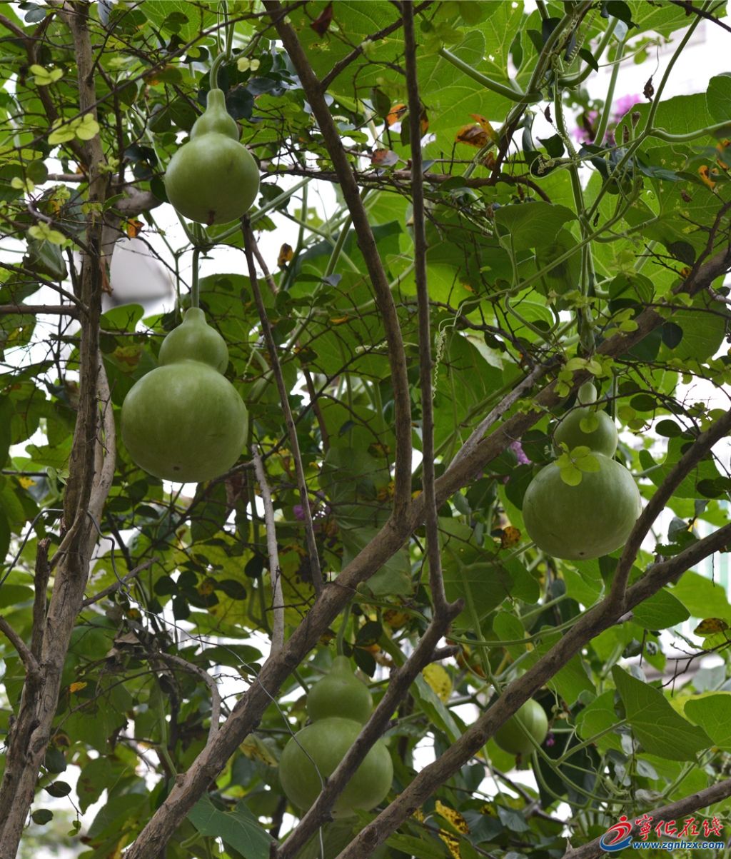 闲居陋室向空园,偶抛瓜秧依树栽,不期葫芦挂满枝,也学菜农弄瓜蔬。虽几个葫芦挂院中,却有春种秋实收获感。