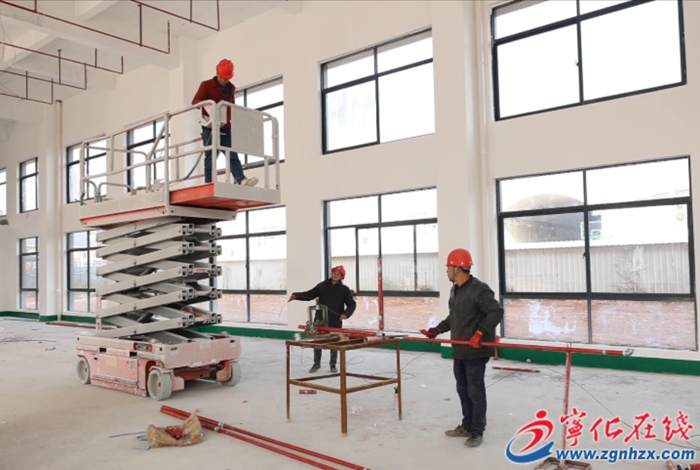 1月8日,在宁化县薏米·河龙贡米精深加工项目建设现场,工人正进行室内水电、消防管道安装等工作。