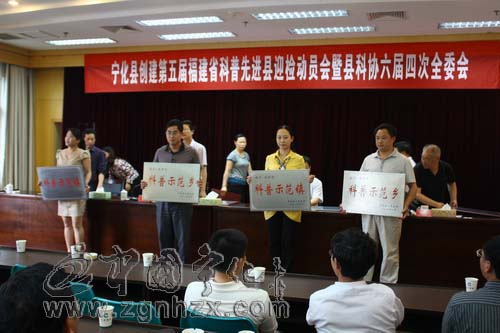 会议选举了廖福旺同志为县科协主席,宣读了《宁化县人民政府关于表彰 2011年科普工作先进集体和先进个人的决定》。表彰了翠江镇、河龙乡河龙村等17家先进集体和王盛东、刘春辉等20名先进个人。