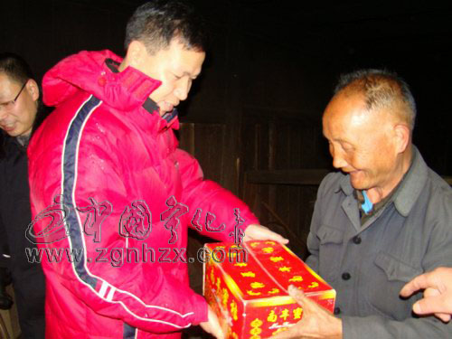 “谢谢,谢谢你们!”在里屋组,今年14岁的吴丽萍接过网友们送来的爱心年货感动得落泪。吴丽萍和姐姐从小被父亲吴新良收养,一家住在2011年春节前靠别人资助建设、到现在都未能装好门窗的房子里。当天,网友们还慰问了下付村云盖山组低保户付绍金。
