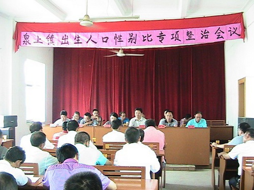 8月17日上午,宁化县泉上镇召开出生人口性别比专项整治工作会议,对综合治理出生人口性别比工作进行动员、部署。专项整治从8月17日至9月30日结束,为期近一个半月。该乡全体镇干部,各村书记、主任、计生管理员,镇直各单位负责人100余人参加了会议。