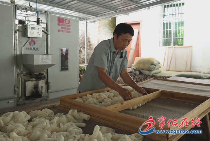 竹荪被誉为“菌中皇后、山珍之花”,是珍贵的食用菌之一,因其体态优美、营养丰富、口感爽脆,近年来受到众多消费者的青睐。方田乡南城村拥有林地面积17000亩,凭借其生态资源、丰富的劳动力资源等特色优势,吸引在外乡贤回宁投资,建设高标准现代食用菌生产基地,不仅实现从菌种培育到成品加工的全链条标准化生产,更让产业发展的红利实实在在惠及村民。目前已带动50余名村民就业增收,还为村集体经济带来每年1.5万元的稳定收益。