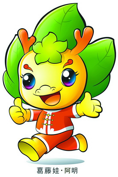 “葛藤娃•阿明”身着客家服饰,张开双臂、快步向前,跳跃的步伐既表达了三明客家人喜迎世界客属乡贤回家的欢快心情,又寓意了三明科学发展、跨越发展的良好势头;高举的大拇指既反映出三明客家人办好世客会的坚定信心,又象征着世界客属乡贤对三明及三明客家人的赞誉之情。
